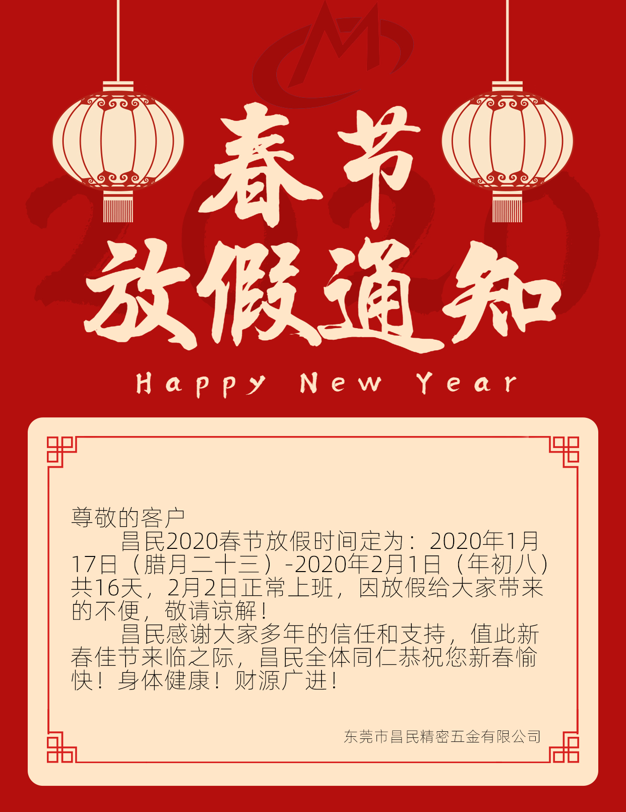2020春节放假通知